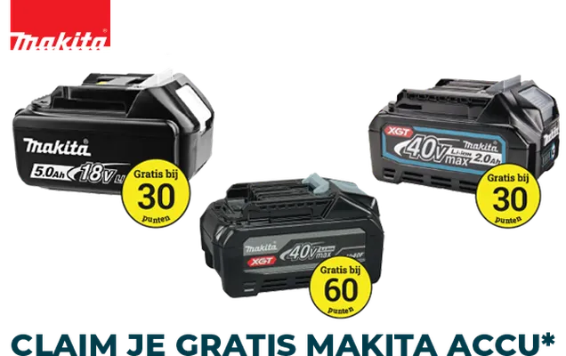 Gratis accu bij aankoop van geselecteerde Makita machines
