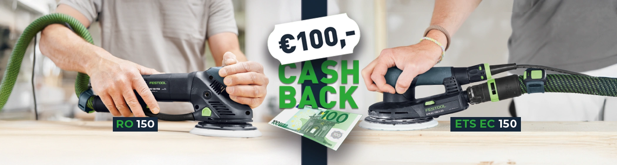 Van 7 april - 30 juni 2026 heeft Festool op machines €100,- cashback